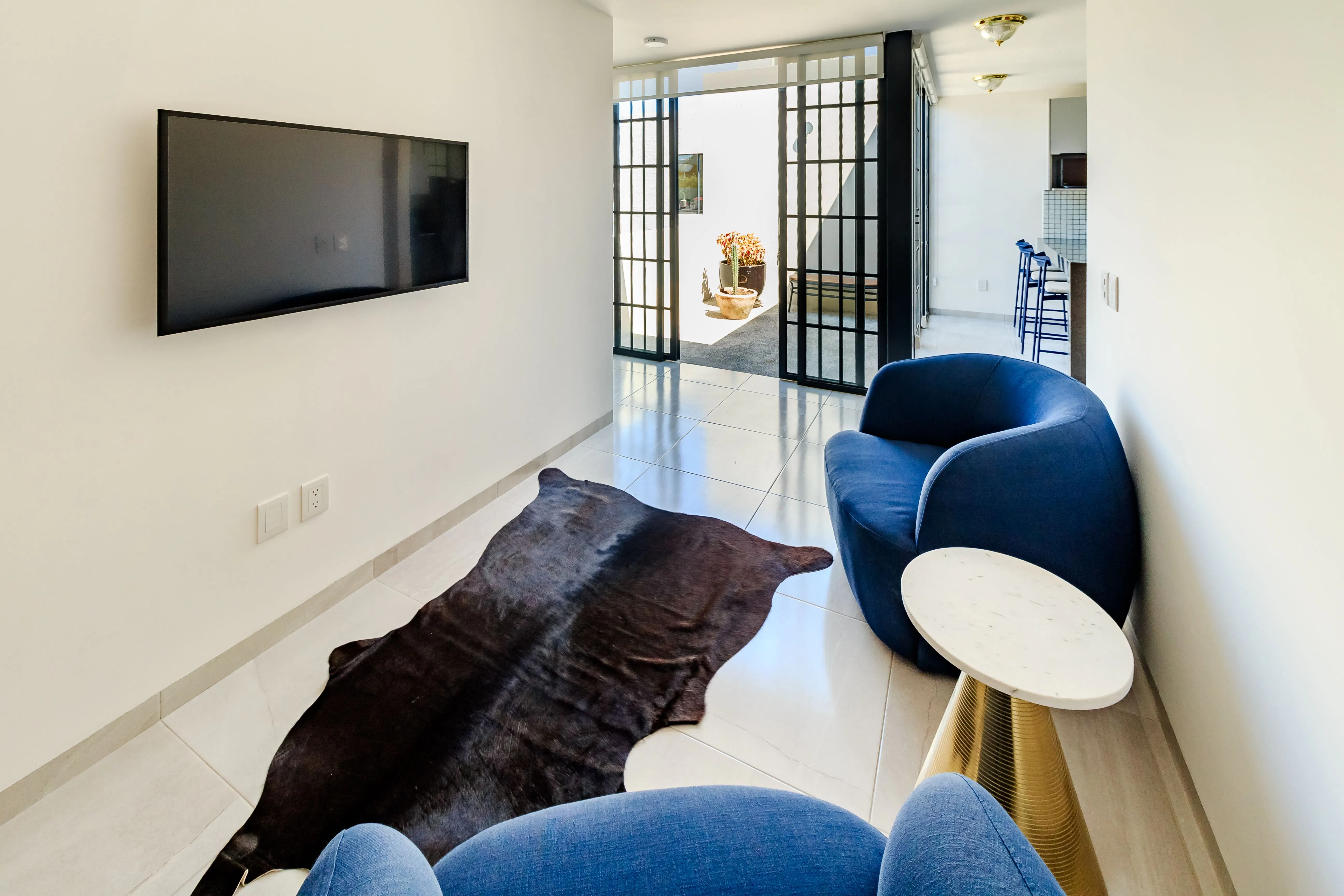 Ideal for couples or small families, these apartments offer the perfect combination of elegance and comfort, featuring spacious rooms and an exclusive outdoor area. Overnight parking 1/2 block away. Experience ultimate luxury in the Alborada Apartment at Hotel Roma 1888, located in Guadalajara’s historic and fashionable Colonia Americana. This deluxe two-bedroom apartment boasts an expansive private terrace, high-end furnishings, and premium amenities that cater perfectly to both discerning travelers and business professionals. Embrace the boutique luxury, personalized service, and private elegance unique to Hotel Roma 1888, ensuring an unforgettable stay in Guadalajara’s premier accommodation.